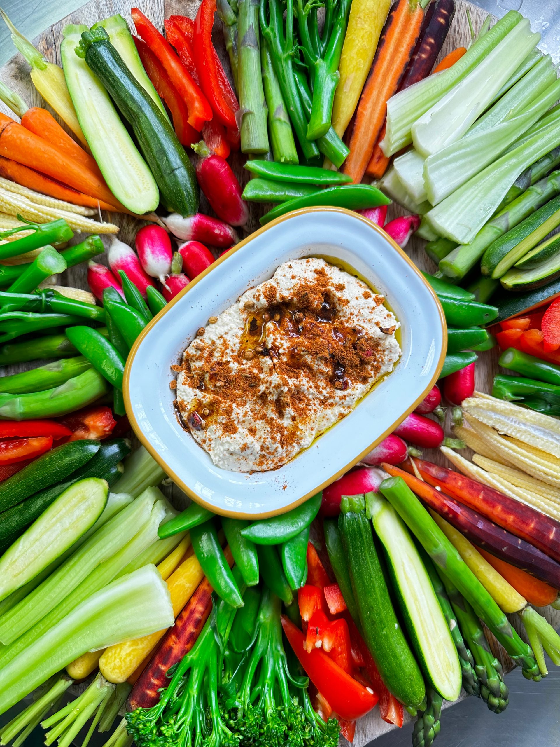 Delicious dips, fresh and blanched veg